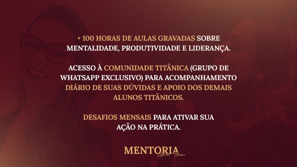 Se você é do tipo de pessoa que vive por condição e não por decisão, essa mentoria é exatamente para você quebrar esse ciclo de inércia que te impede de prosperar. Saiba que, para ter essa energia chamada dinheiro em sua vida, é necessário primeiro tomar uma atitude e não esperar um milagre acontecer, para então começar a mudar a sua realidade. Quem realmente quer, dá um jeito, e quem não quer, dá uma desculpa.
